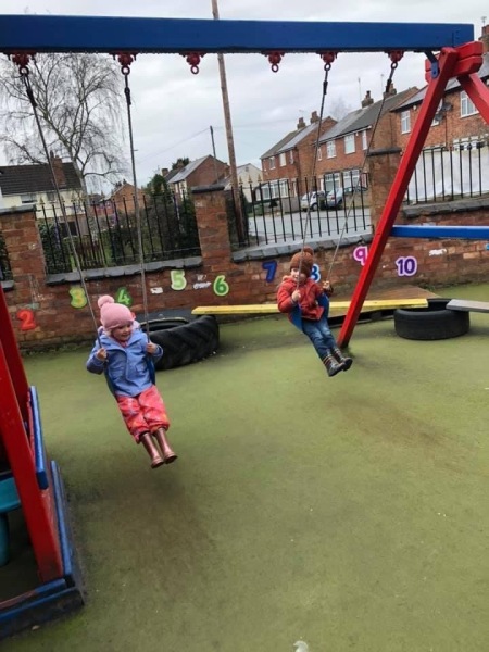 We offer secure out door play area benefiting from a special all weather play surface which never gets muddy or wet due to the sub ground treatment similar to Astro turf pitches.